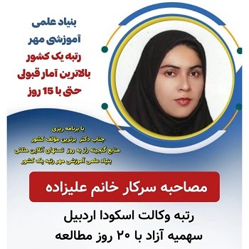 مصاحبه سرکار خانم علیزاده رتبه وکالت اسکودا اردبیل 20 روز مطالعه سال 404