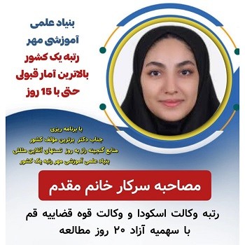 مصاحبه سرکار خانم منا کمالی رتبه وکالت اسکودا و مرکز وکلا تهران 15 روز مطالعه سال 404