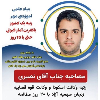 مصاحبه آقای امیر شمس رتبه ارشد- وکالت 1399