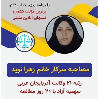 ایشان اولین سالی بود که در آزمون وکالت اسکودا شرکت کردند و اثبات کردند غیر ممکن وجود ندارد.تنها راه قبولی جزوات گنجینه راز تستهای آنلاین مثلثی با برنامه ریزی مثلثی
