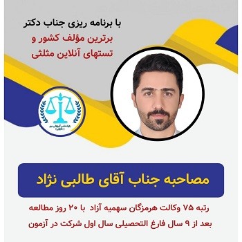 مصاحبه جناب آقای طالبی نژاد رتبه وکالت هرمزگان کمتر یکماه سال 404