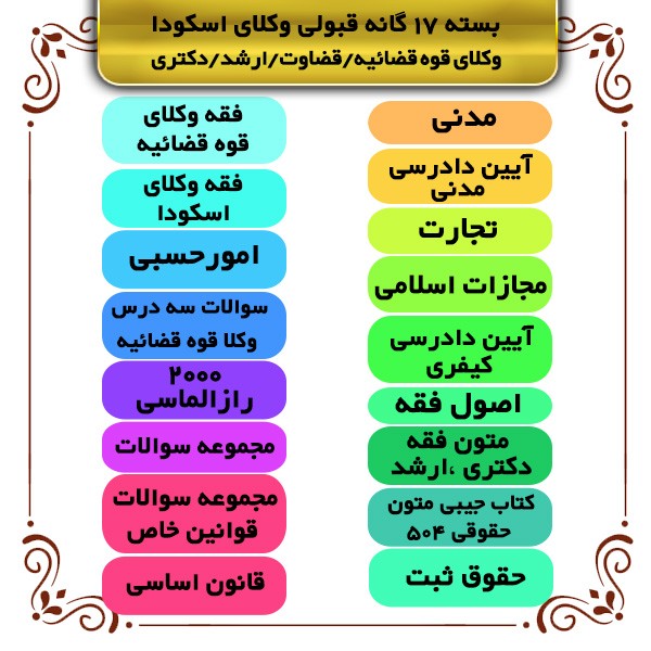 بسته 17 گانه جزوات گنجینه راز(وکالت اسکودا،وکالت قوه قضاییه،قضاوت،ارشد،دکتری، سردفتری)با برنامه ریزی و مشاوره تلفنی
