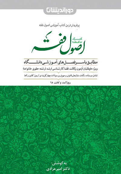 این کتاب دکتر برگرفته ازکتاب ابوالحسن محمدی (منبع اصلی اصول فقه) و جزء پر فروش ترین کتاب های آموزشی اصول فقه می باشد. بطوریکه در مدت زمان 3 سال 30،000 جلد از این کتاب منتشر شده و به چاپ بیست و دوّم رسیده است. این کتاب کلیه مباحث اصول فقه را در قالب 7 فصل طبقه بندی کرده است: