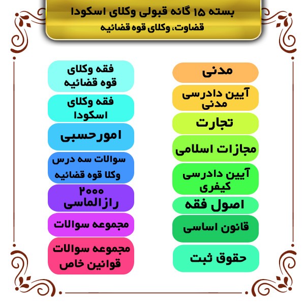 بسته 15 گانه جزوات گنجینه راز(وکالت اسکودا،وکالت قوه قضاییه)با برنامه ریزی و مشاوره تلفنی